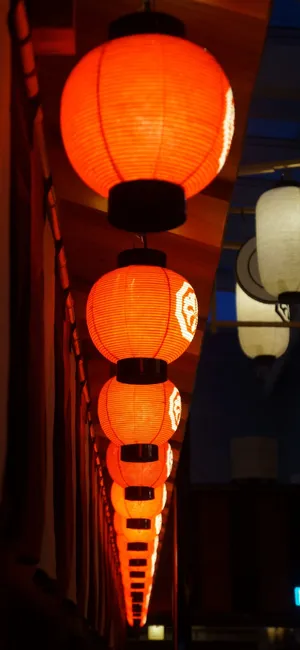 "depicting Tranquility - Traditional Red Japanese Lanterns On An Iphone Wallpaper." Wallpaper -