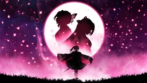 Two Anime Girls With Swords And Butterflies Wallpaper -