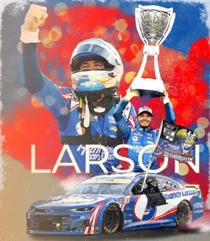 "kyle Larson Victorious With Trophy" Wallpaper -
