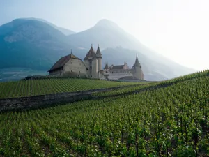 "scenic View Of Aigle Castle Nestled In The Idyllic Countryside Of Vaud, Switzerland" Wallpaper -