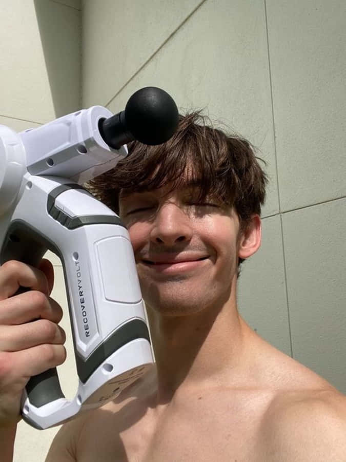 A Young Man Standing In Front Of A Couch Wallpaper -