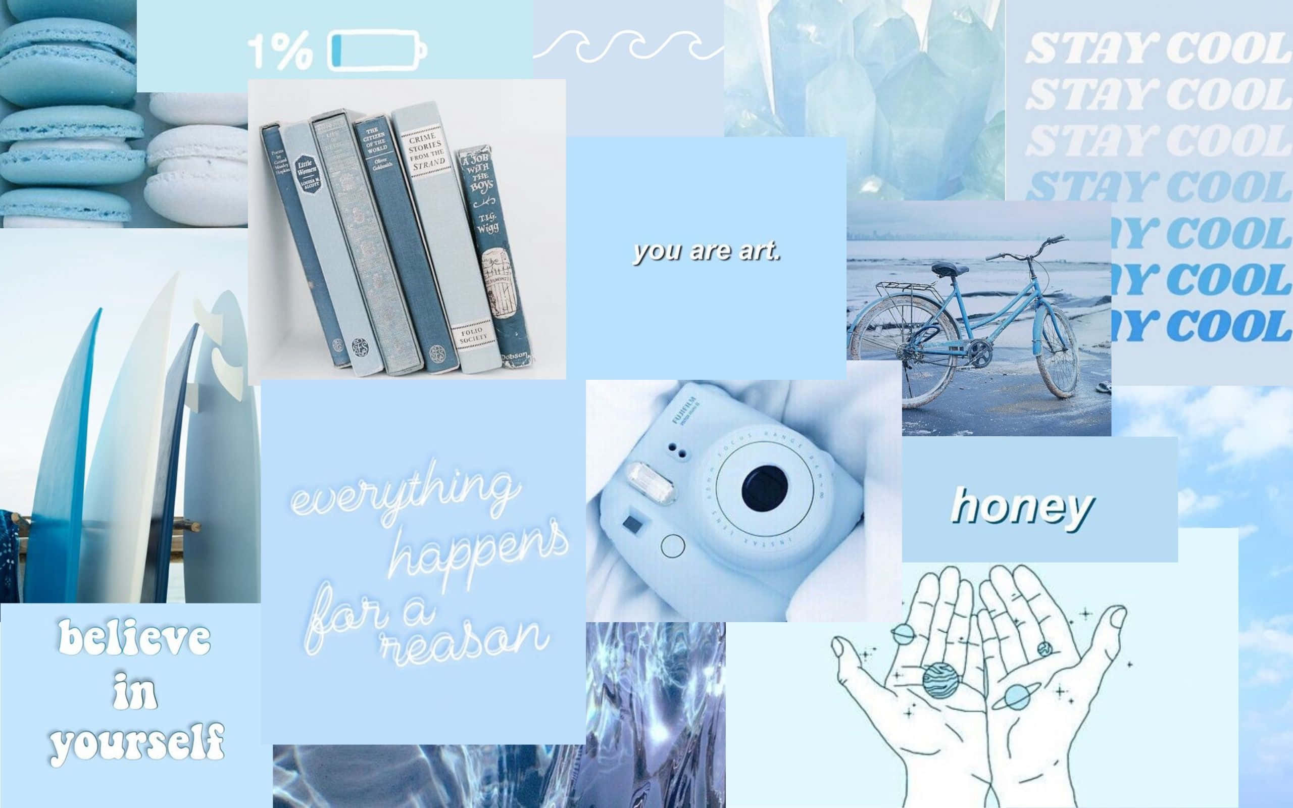Light Blue Aesthetic Collage Laptop Wallpaper
