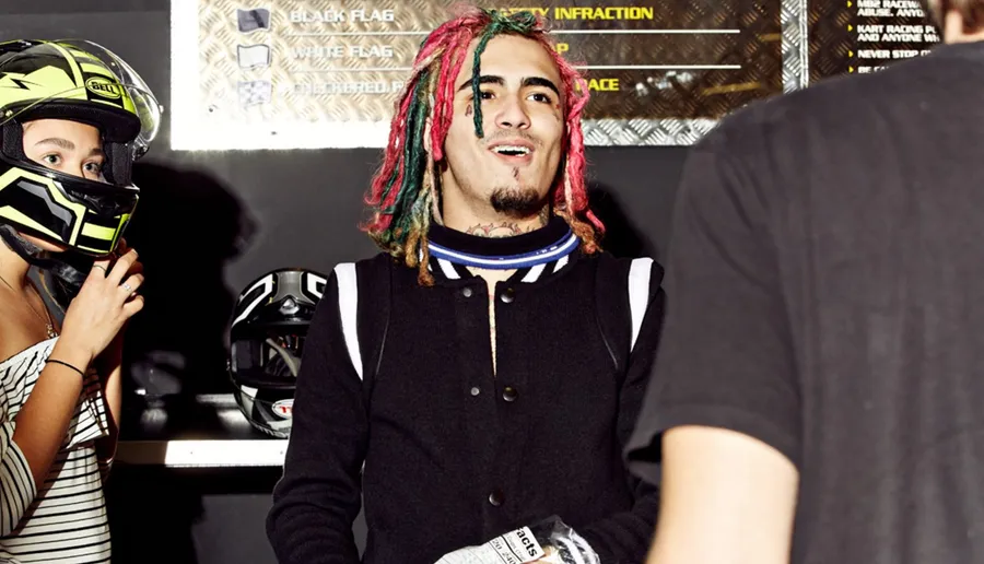 Photo Lil Pump Poses In His Iconic Neon Pink Hairstyle Wallpaper -