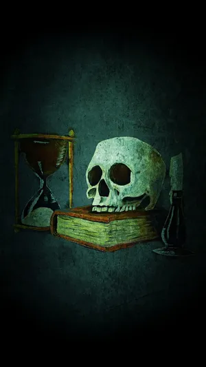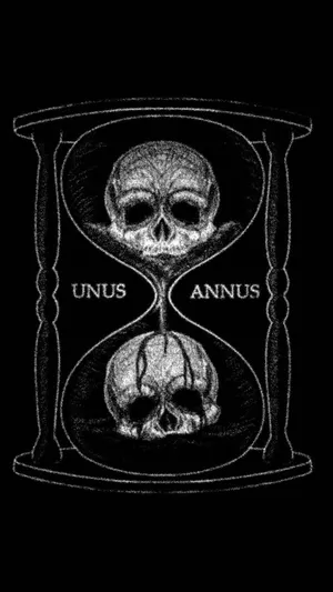 A Black Background With A Skull, A Clock And A Skull Wallpaper -