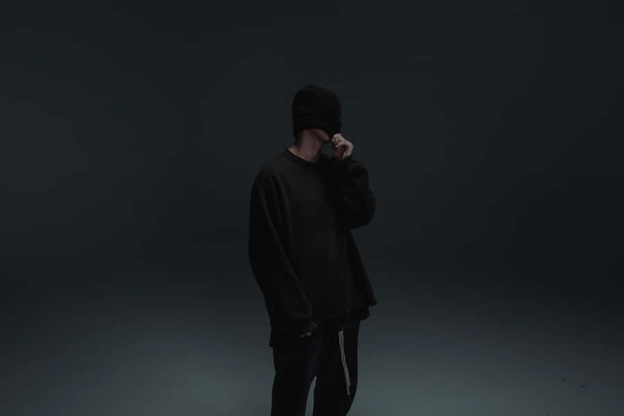 A Man In A Hoodie With A Face Sticker Wallpaper -