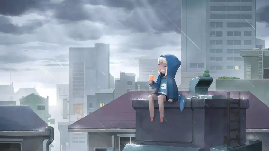 Related Lo Fi Anime Chill Girl In Rooftop Wallpaper