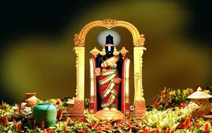 "sacred Figure Of Lord Venkateswara Surrounded By Divine Flowers And Pots" Wallpaper -