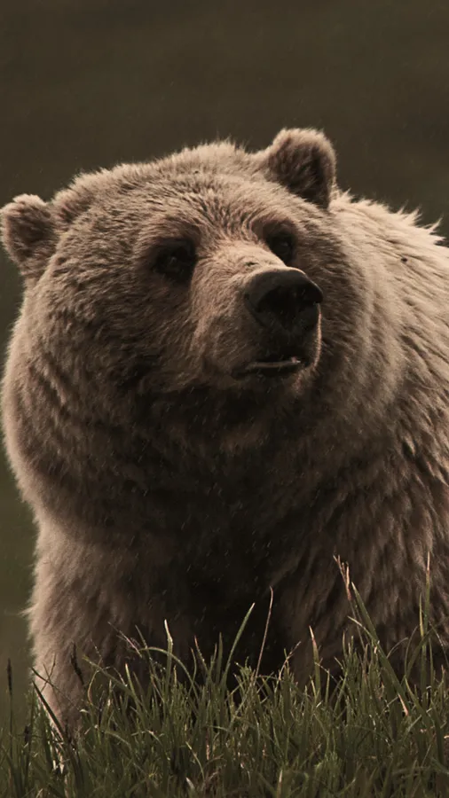 Majestic Brown Bearin Wildflowers Wallpaper -