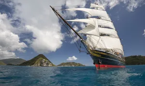 Majestic Sailboat Cruising On Crystal Clear Waters Wallpaper