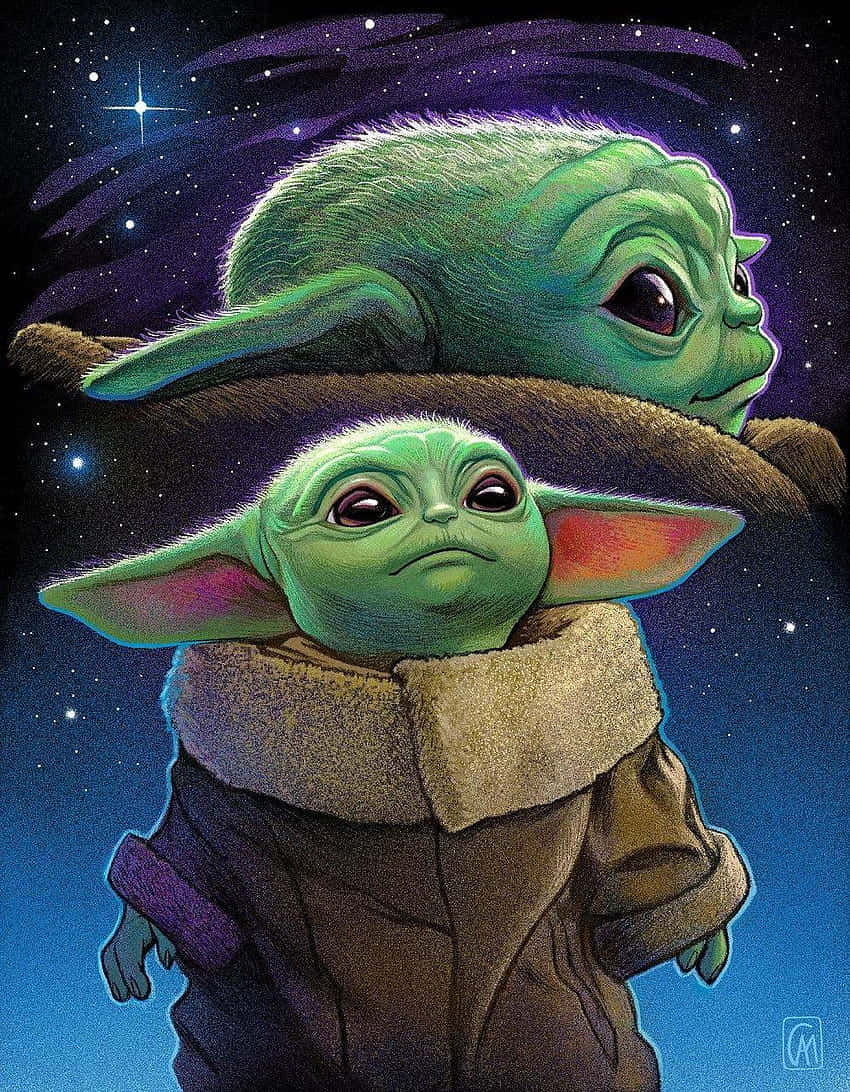 Cute Baby Yoda Christmas Drawing Wallpaper -