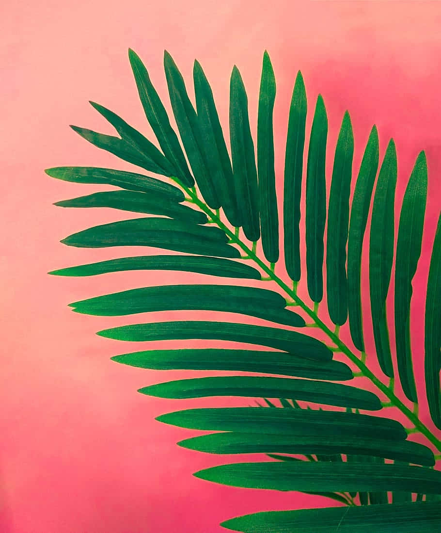 Minimalist Green Frondon Pink Background Wallpaper -