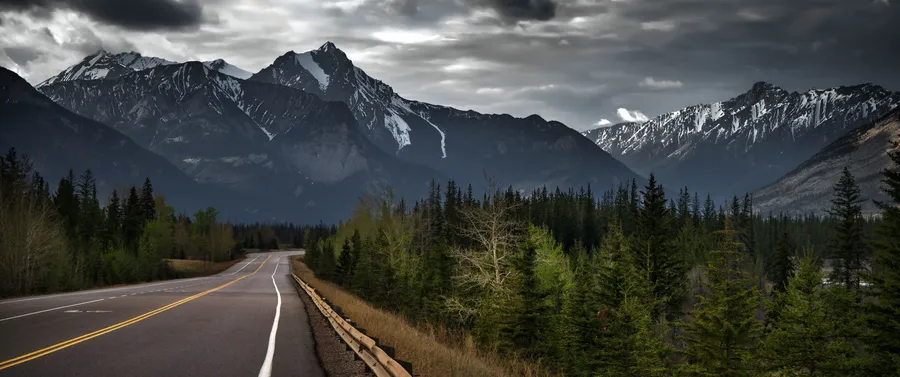 Related Mountain_ Road_ Under_ Stormy_ Skies Wallpaper