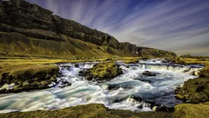 Enjoy The Cascade Of Waterfalls Amidst The Glacial Landscape Of Iceland Wallpaper