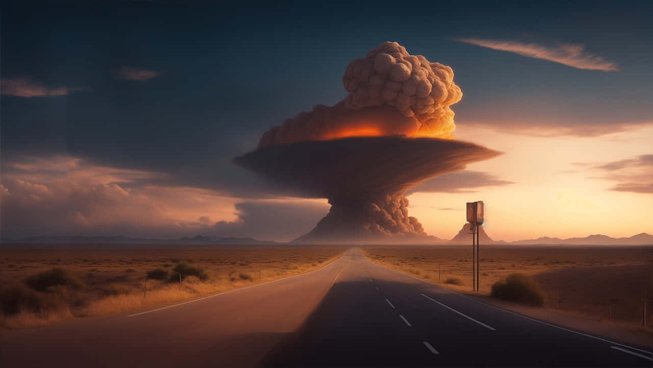 Mushroom Cloud Over Desert Road.jpg Wallpaper -