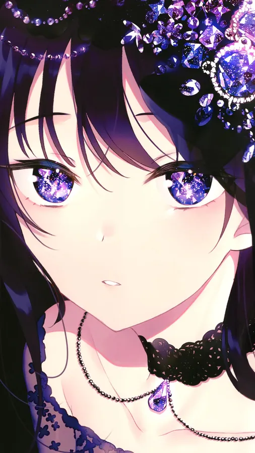 Mystic Purple Eyed Anime Girl Wallpaper -
