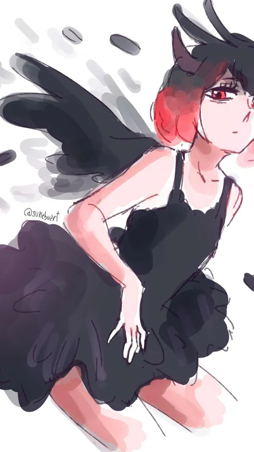 A Girl With Black Hair And Horns On A Pink Background Wallpaper -