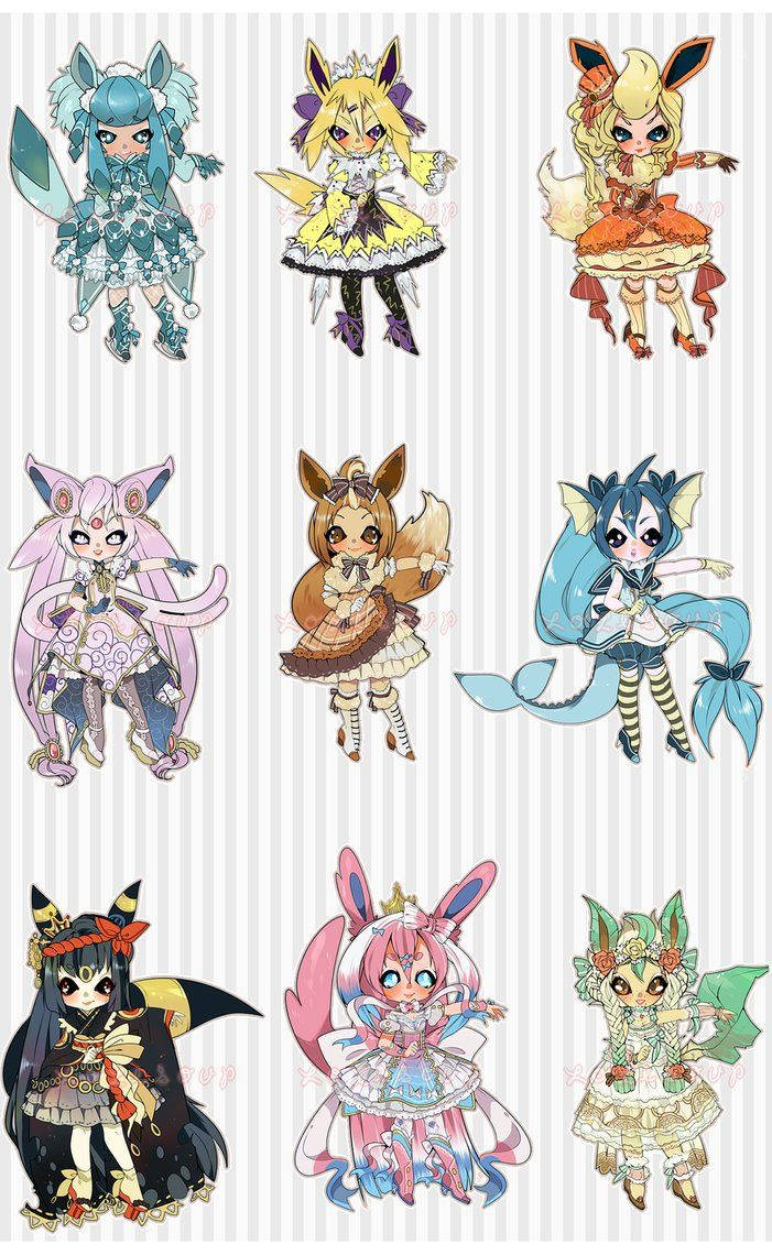 'get All Eevee Evolutions In Human Form Wallpaper -