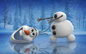Cute Olaf Enjoying In A Winter Wonderland Wallpaper -