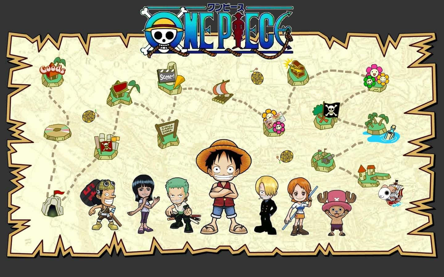 One Piece Chibi Straw Hat Pirates Map Wallpaper