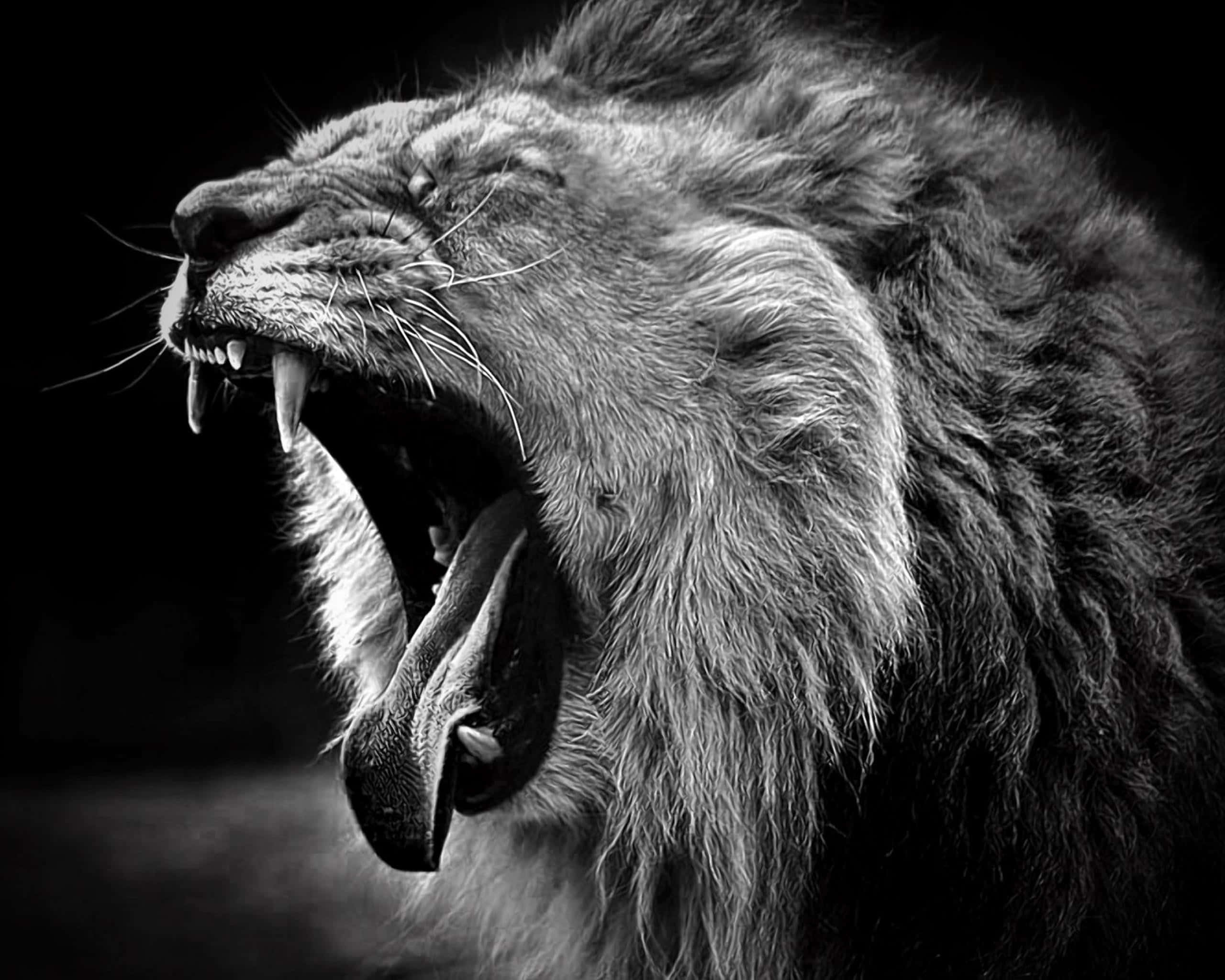 "a Majestic Black And White Lion Showing Its Noble Power" Wallpaper -