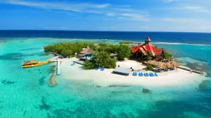 A Tropical Island With Thatched Huts And Clear Water Wallpaper -