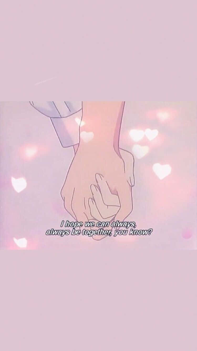 Pastel Pink Aesthetic Anime Holding Hands Wallpaper
