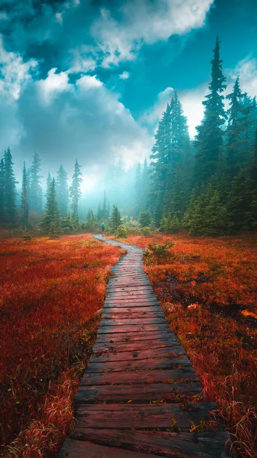 Tranquil Forest Path Leading To Majestic Mountain Vista Wallpaper -