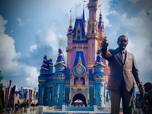"majestic View Of The Disney Castle With Walt Disney Statue." Wallpaper  -