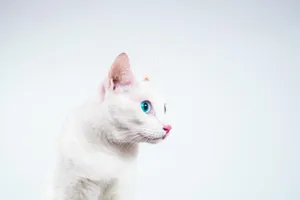 A White Kitten Sitting On A Pink Background Wallpaper -