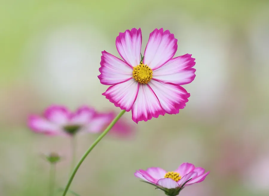 Related Pink Cosmos Flowers With Yellow Centers Wallpaper