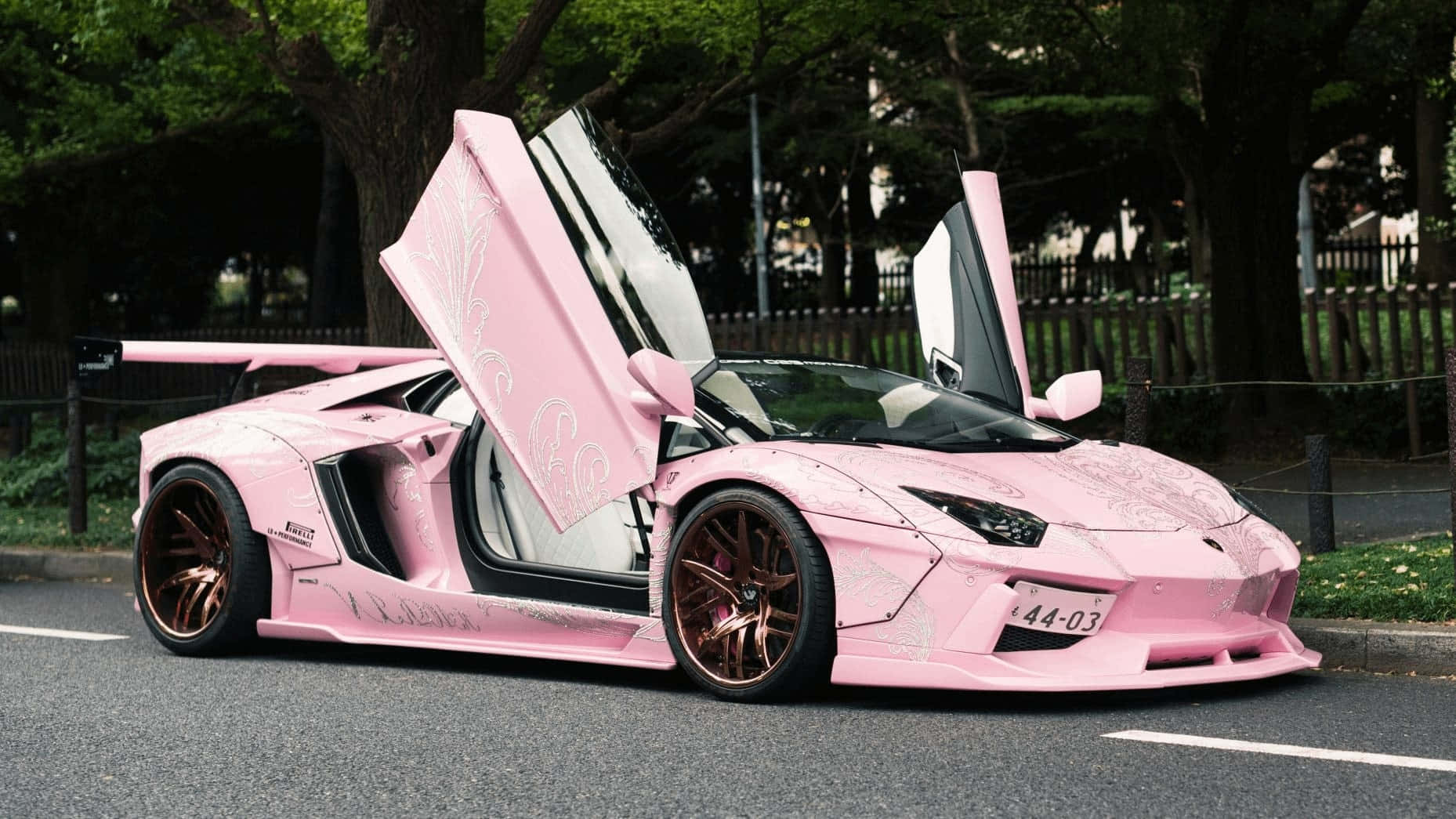 Pink Sparkling Lamborghini With Doors Open Wallpaper -