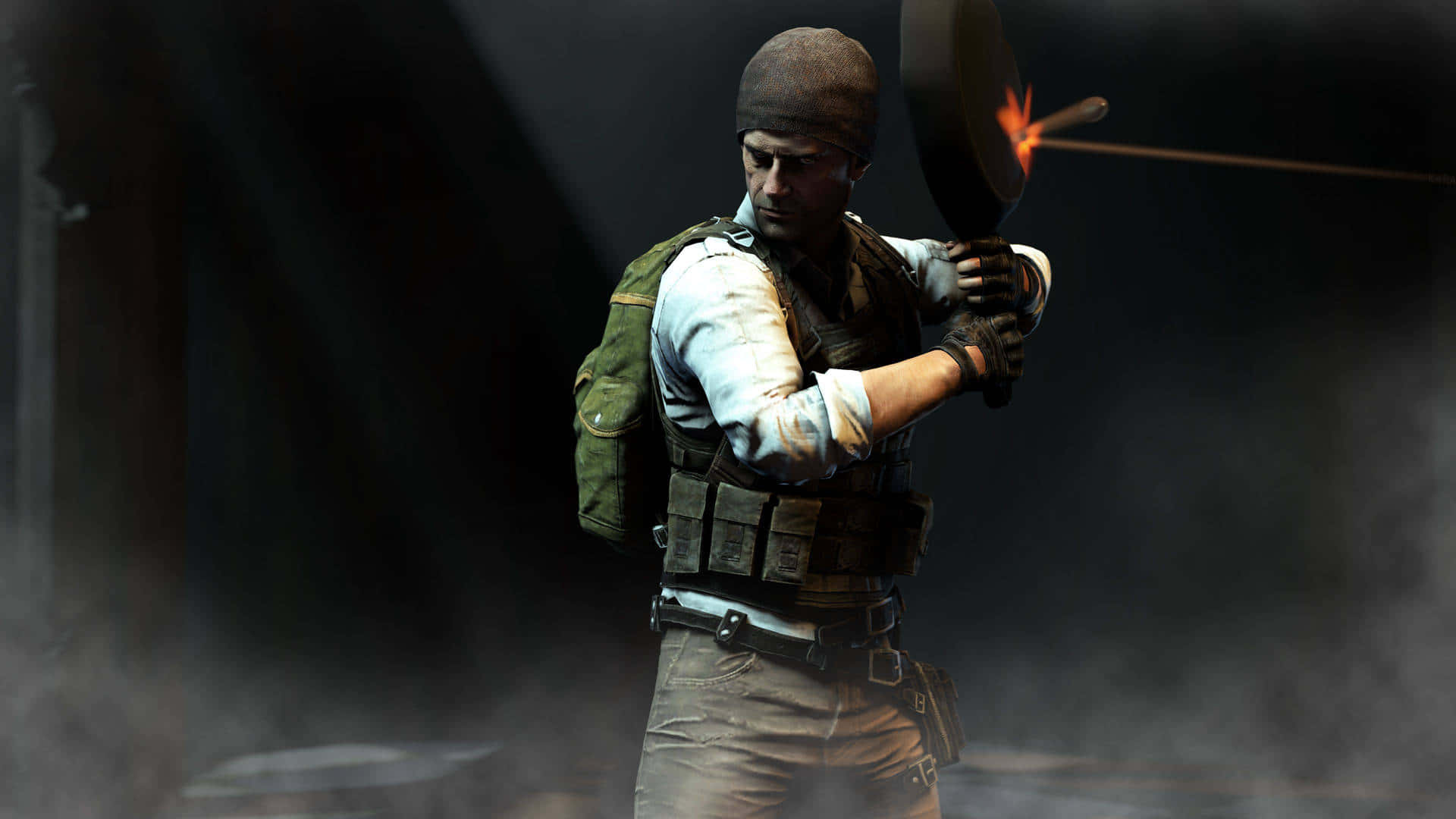 A Man Is Shooting A Gun In The Grass Wallpaper -