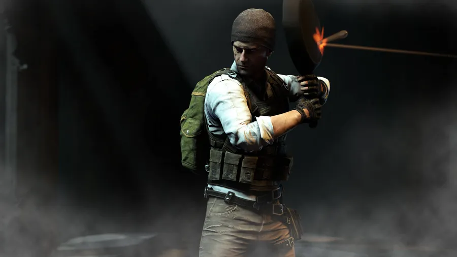 A Man With A Gun In Front Of A Fire Wallpaper -