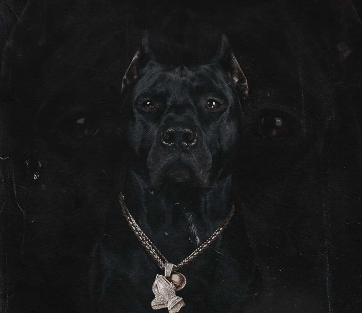 Black Pitbull With A Wolf Collar Wallpaper -