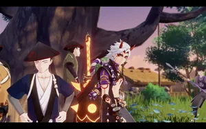 Explore The Mystical World Of Teyvat With Itto And His Friends! Wallpaper -