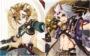 Itto, The Adventurous Anemo Traveler With His Trusty Companion Kaeya Wallpaper -