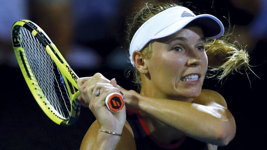 Danish Tennis Pro, Caroline Wozniacki In Action Wallpaper -
