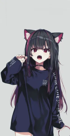 Cat And Anime Girl Phone Wallpaper -