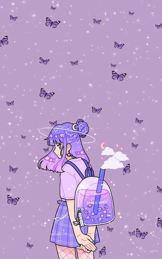 Related Purple Anime Girlwith Butterflies Wallpaper