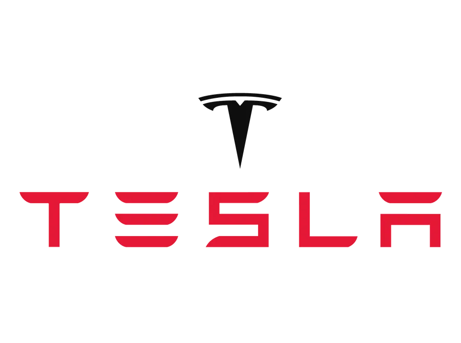 Red And Silver Tesla Logo Standing Out Against A Black Background Wallpaper