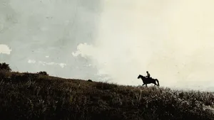 A Man On A Horse Is Standing On A Hill Wallpaper -