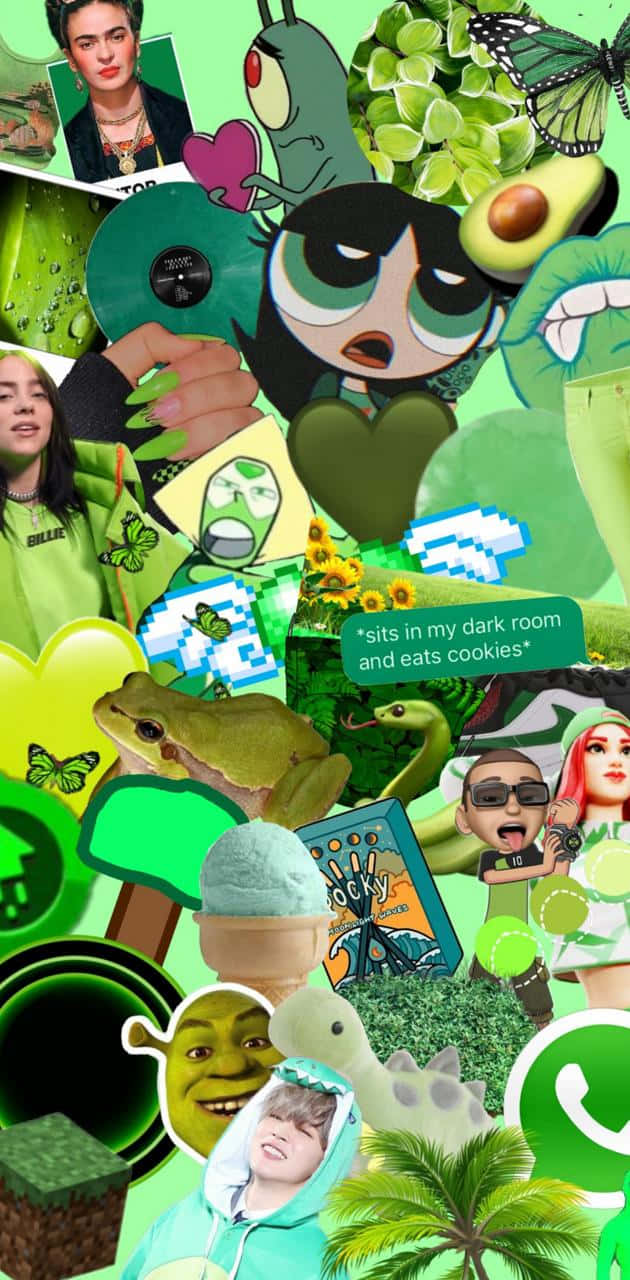 Olive Greenaesthetic Desktop Cool Collage Wallpaper -