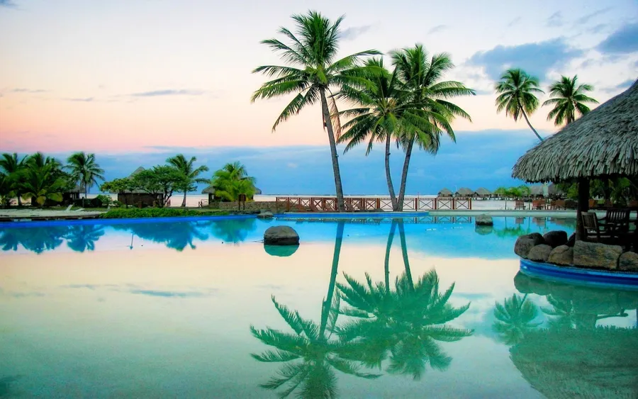 An Idyllic Landscape Featuring Palm Trees And A Peaceful Beach Wallpaper -