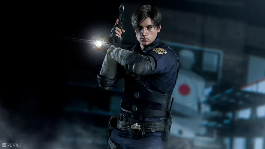 Resident Evil2 Remake Leon With Flashlight Wallpaper -