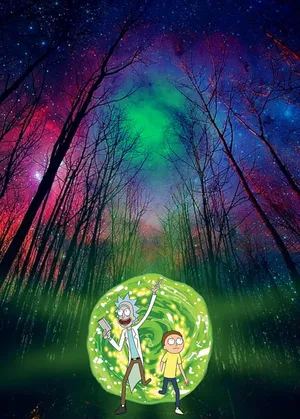 Rick And Morty Are Travel Through A Portal Into A New World Wallpaper -