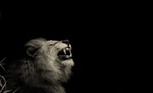 A Black And White Photo Of A Lion Roaring Wallpaper -
