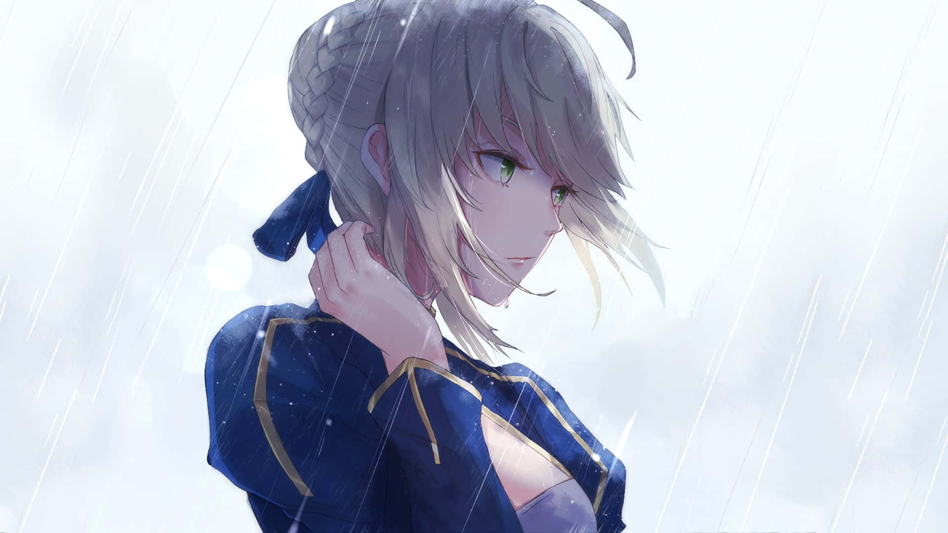 Saber Fate Stay Night In Rainy Forest Wallpaper -