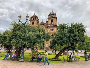 Vibrant Main Square Garden In Cusco, Peru Wallpaper  -