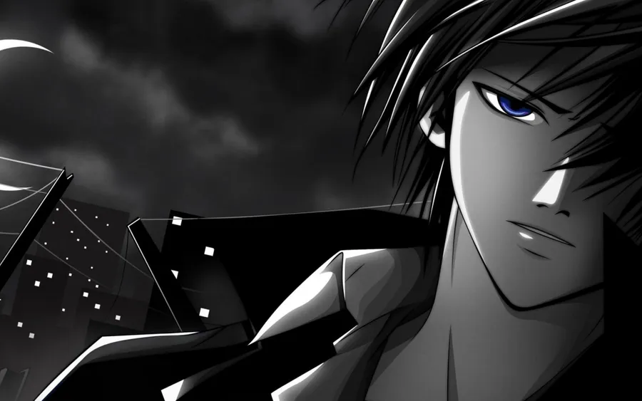 A Lone Emo Anime Boy Stares Into The Dark Night. Wallpaper -