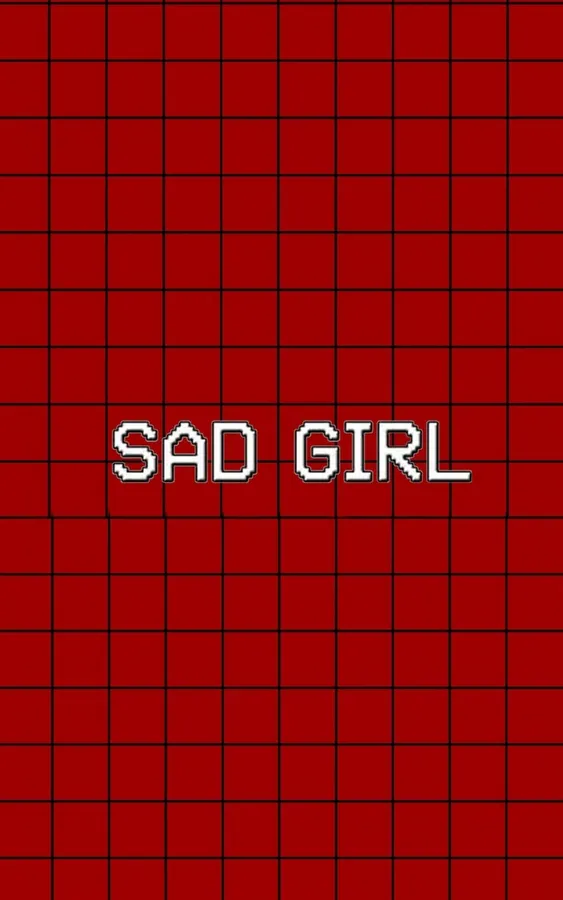 Sad Girl With Black And Red Aesthetic Grid Illustration Wallpaper